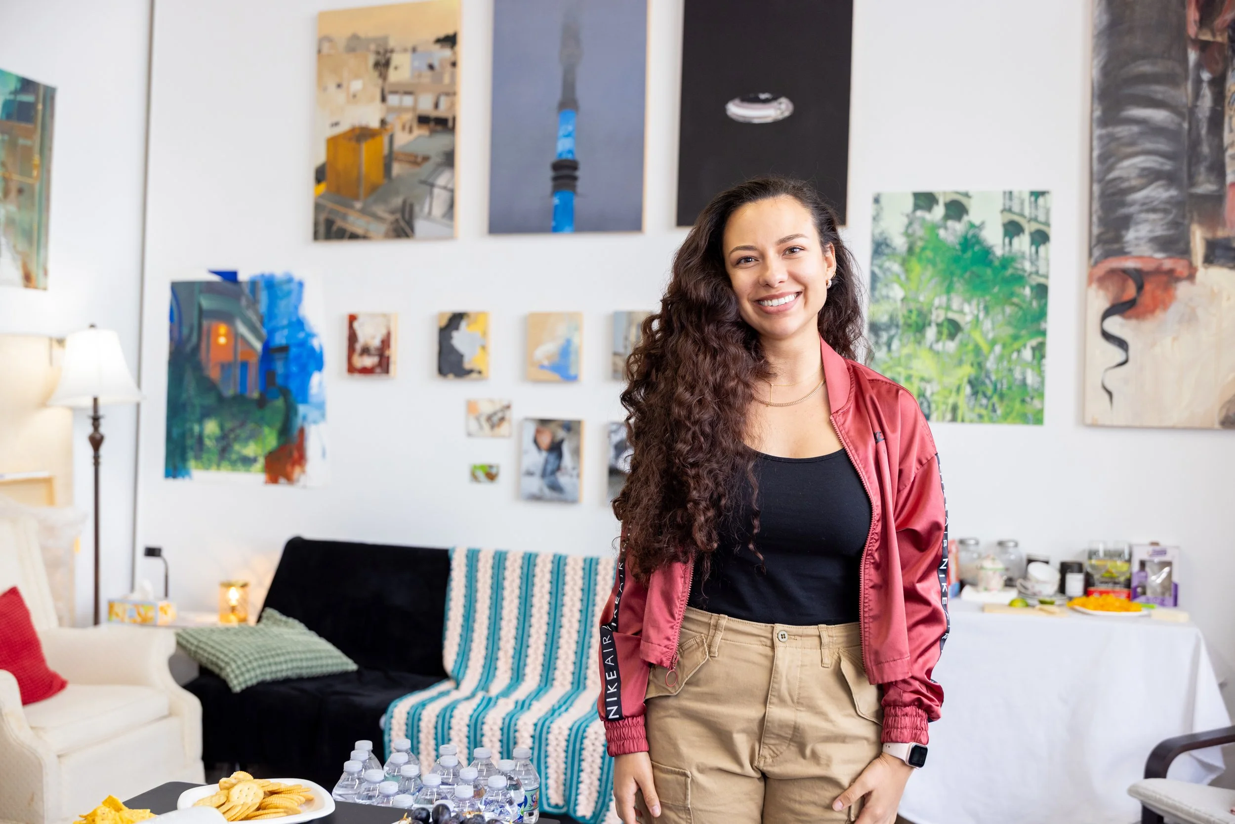 Nadia Younes in her studio at Erector Square, New Haven, 2025. Photo: Maher Mahmood.